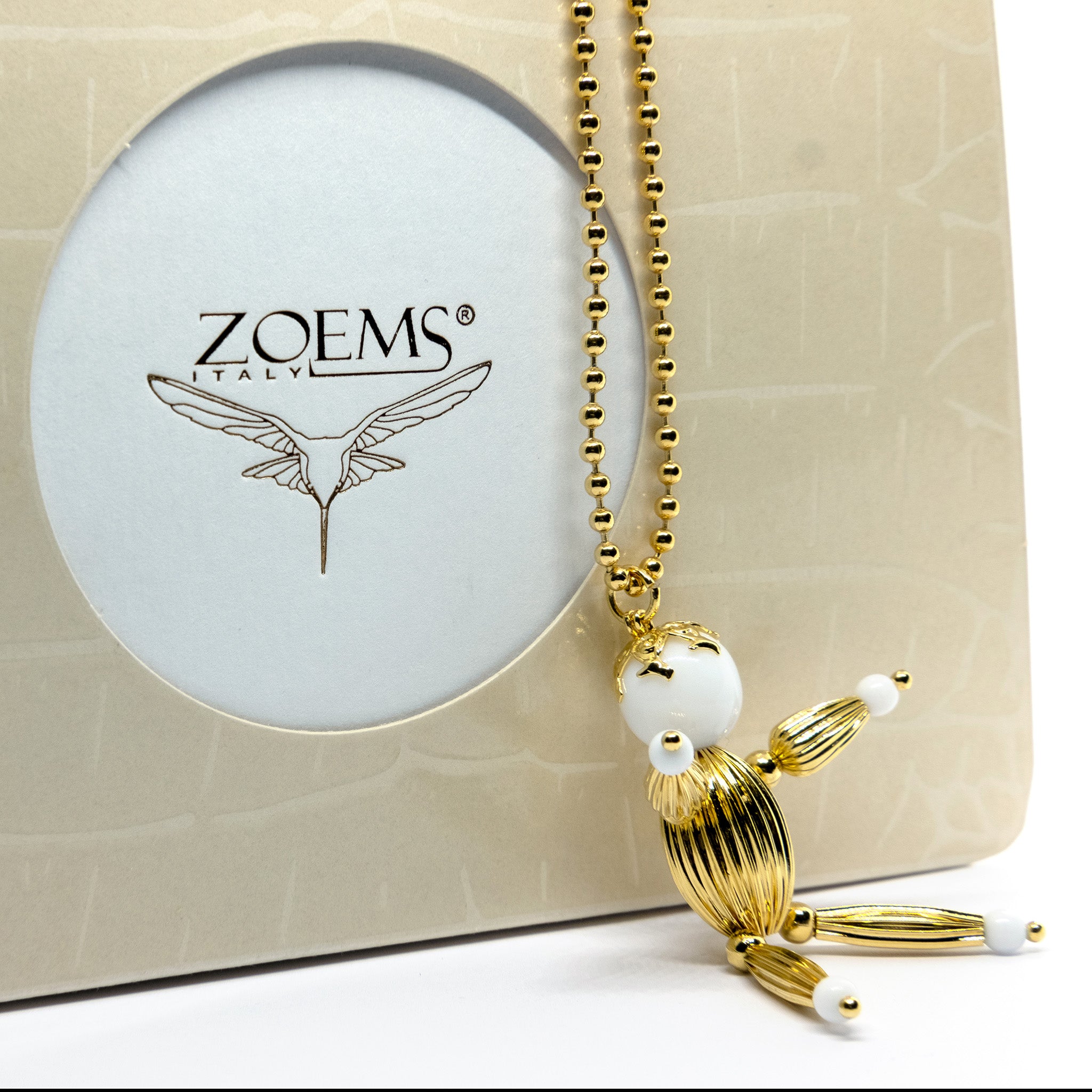 Collana Ninni lunga 93 cm circa, placcata in metallo prezioso, oro, con spessore 0,20 micron certificati e pietra colore Bianca.