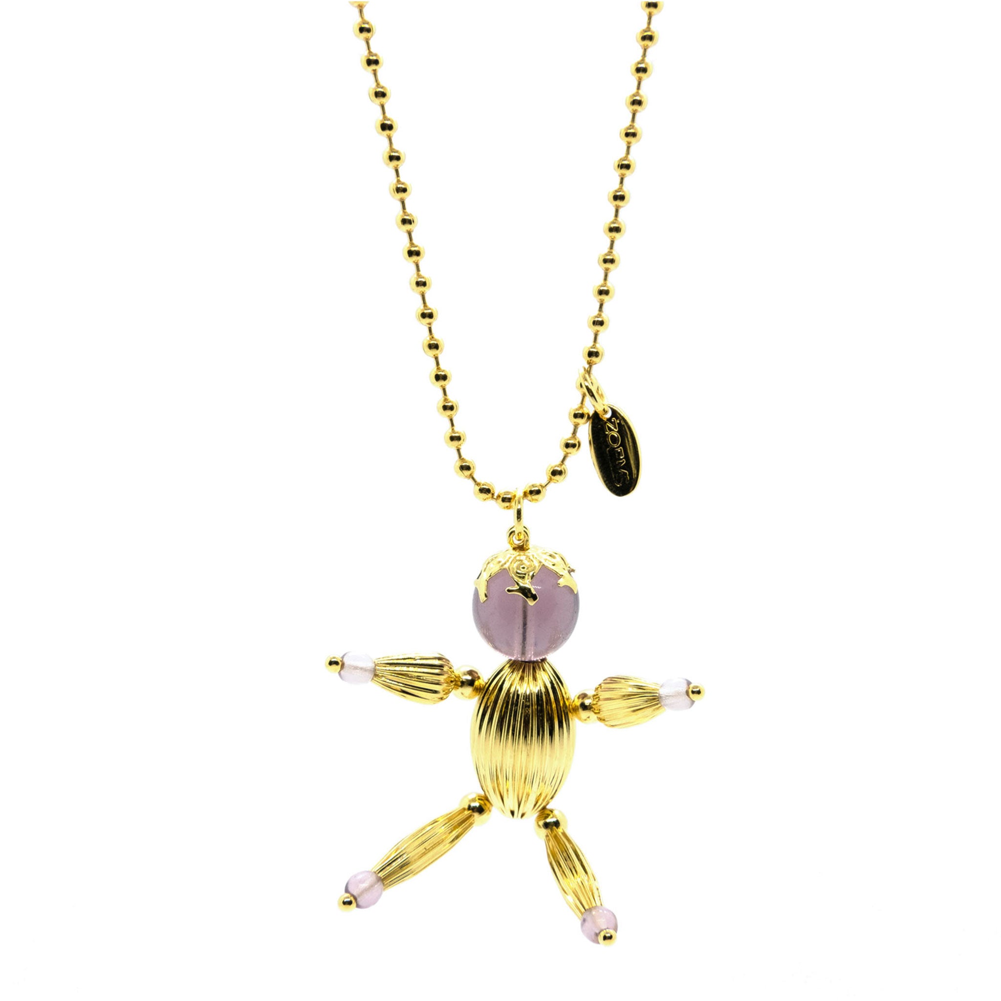 Collana Ninni lunga 93 cm circa, placcata in metallo prezioso, oro, con spessore 0,20 micron certificati e pietra colore Ametista.
