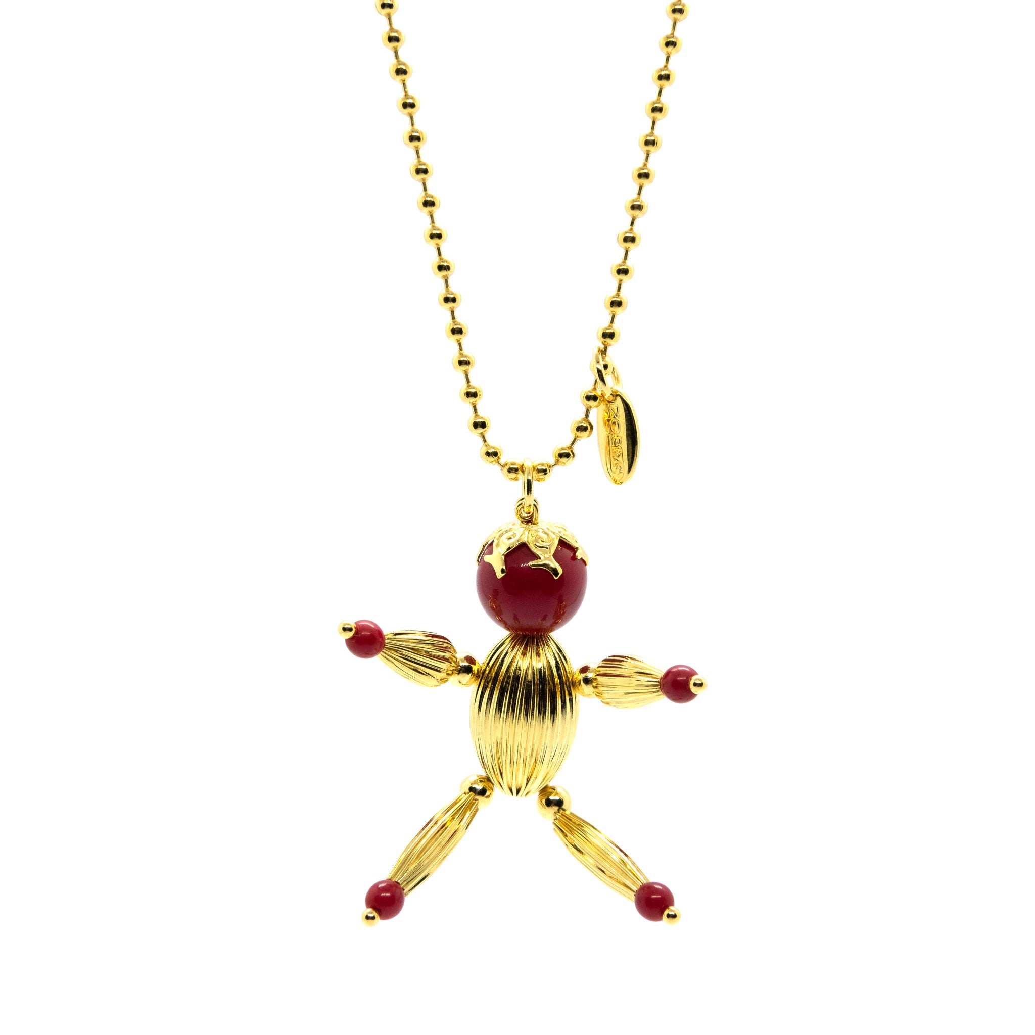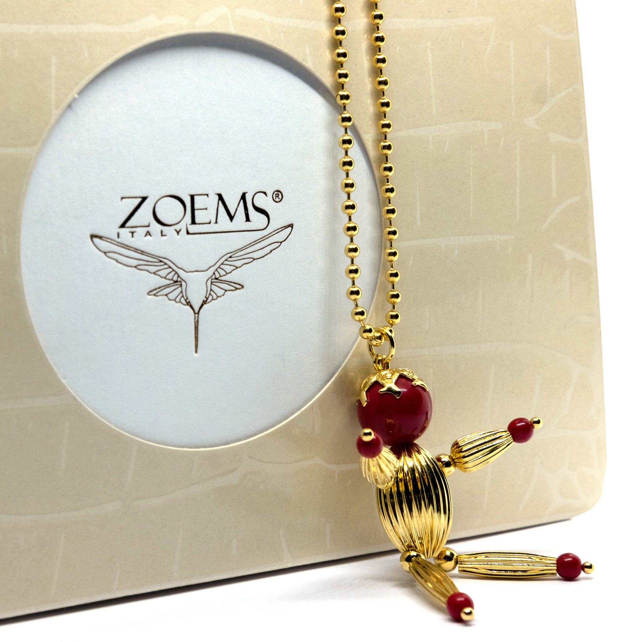 Collana Ninni lunga 93 cm circa, placcata in metallo prezioso, oro, con spessore 0,20 micron certificati e pietra colore Rossa.