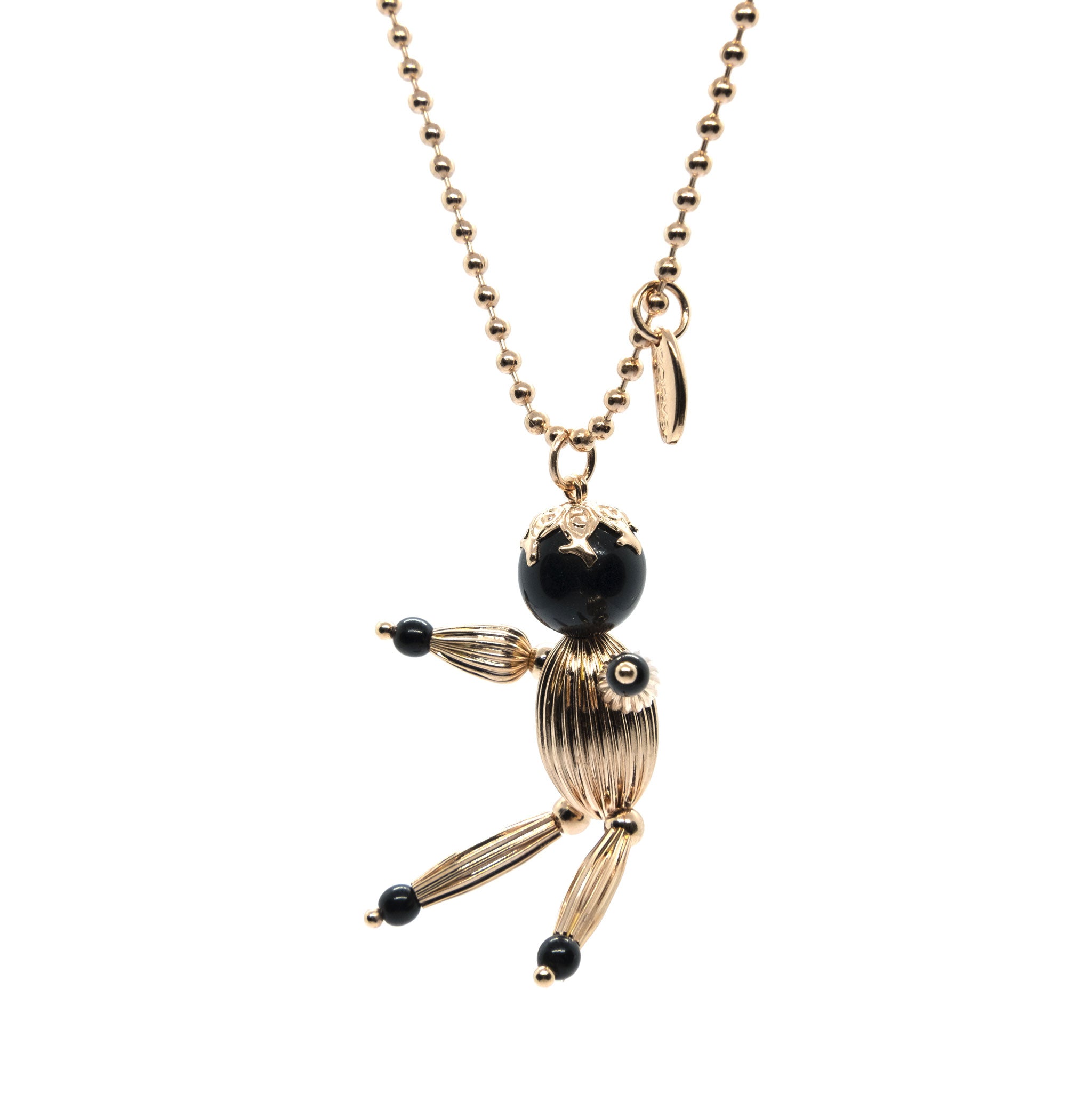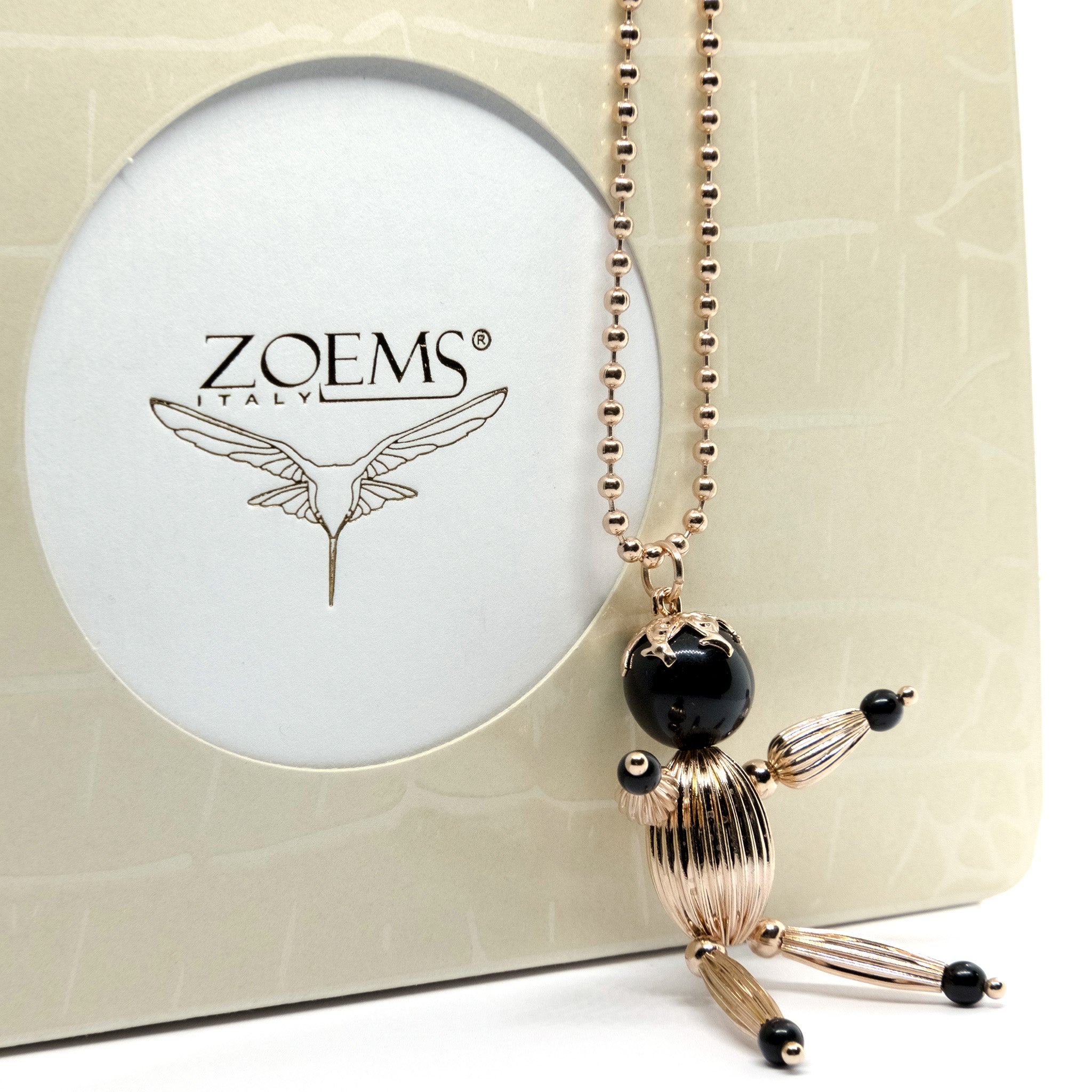Collana Ninni lunga 93 cm circa, placcata in metallo prezioso, oro rosa, con spessore 0,20 micron certificati e pietra colore Nera.