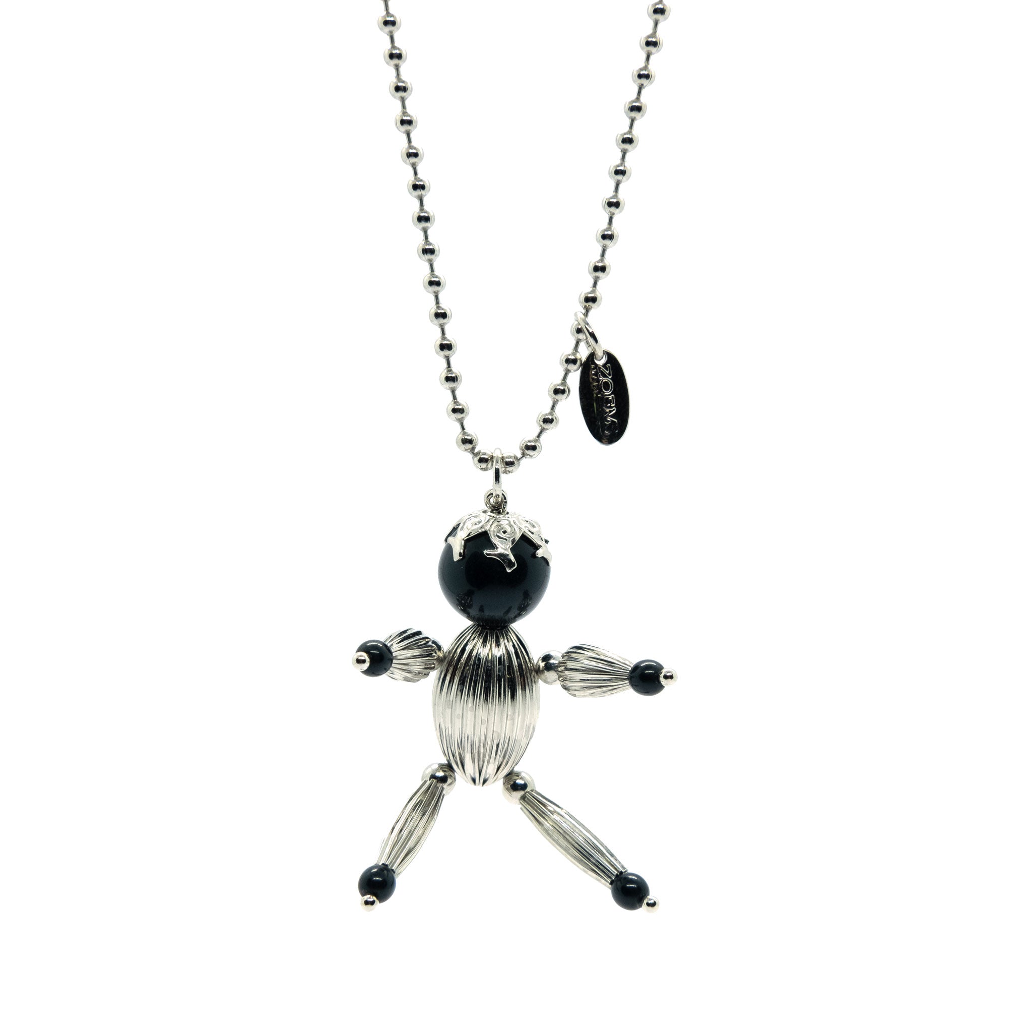 Collana Ninni lunga 93 cm circa, placcata in metallo prezioso, palladio, con spessore 0,10 micron certificati e pietra colore Nera.
