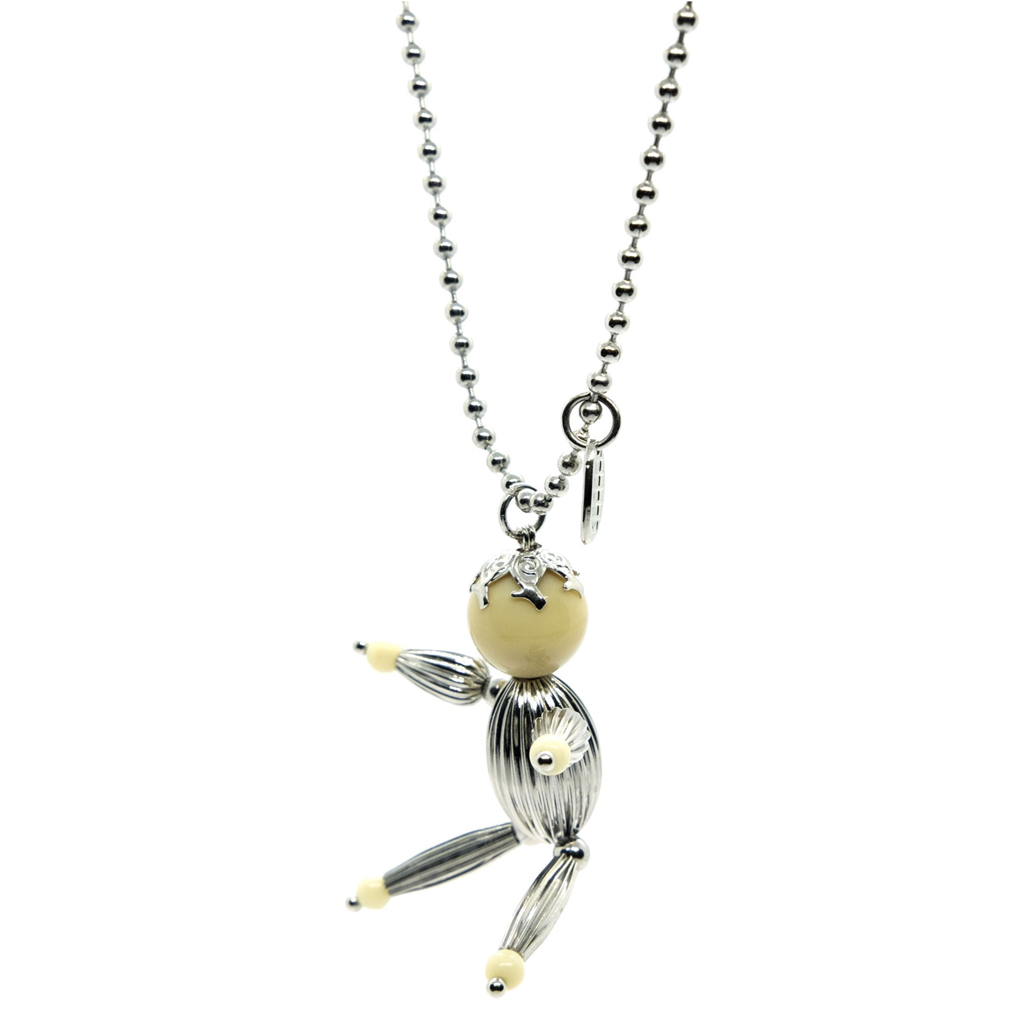 Collana Ninni lunga 93 cm circa, placcata in metallo prezioso, palladio, con spessore 0,10 micron certificati e pietra colore Beige.